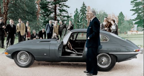 Sir William Lyons and William Heynes are seen at the right of the photograph.