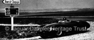 June 1954 the prototype D-type (in the background) was tested at Le Mans along with XP/11. Tony Rolt drove the D-type, Norman Dewis driving XP/11.