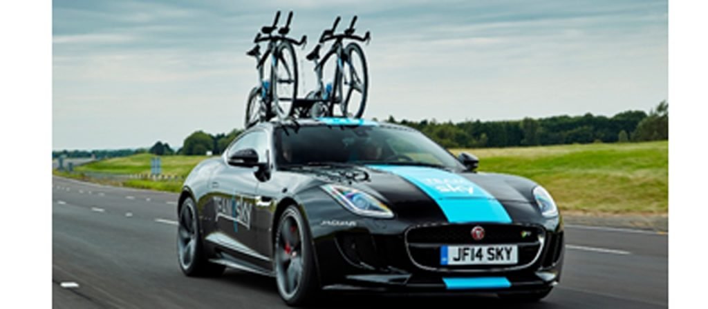 This car is a one-off conversion created by Jaguar Land Rover’s Special Operations division to support Team Sky on the time trial Stage 20 of the 2014 Tour de France. Based on an F-Type R coupé, it incorporates a number of bespoke features including a new racking solution, which carried two of the team’s Pinarello Bolide TT bikes. The vehicle exterior is finished in Team Sky’s famous livery, with colour ways and other Team Sky graphic design features also present inside the car. Further features include a separate electric supply in the boot which provides power to the radios, amplifiers, microphones, horns and televisions which supported communications between Team Sky’s Sports Director and the rider.